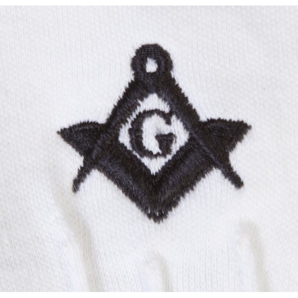 The silver thread Past Master Square, Compasses, and G (SC&G) embroidery adds a refined and meaningful detail. The carefully stitched emblem contrasts elegantly against the white cotton background. Furthermore, the embroidery maintains its clarity and structure even after repeated use. Because of this attention to detail, the gloves reflect both symbolic authority and dependable quality.